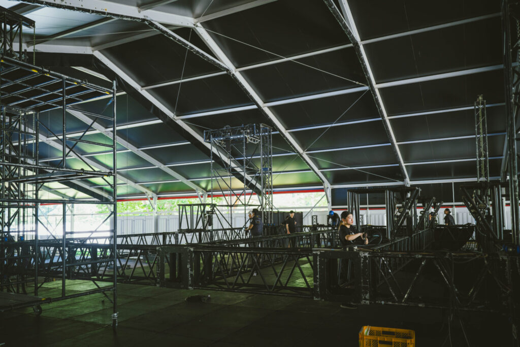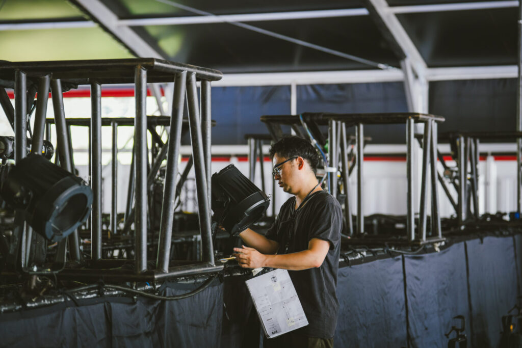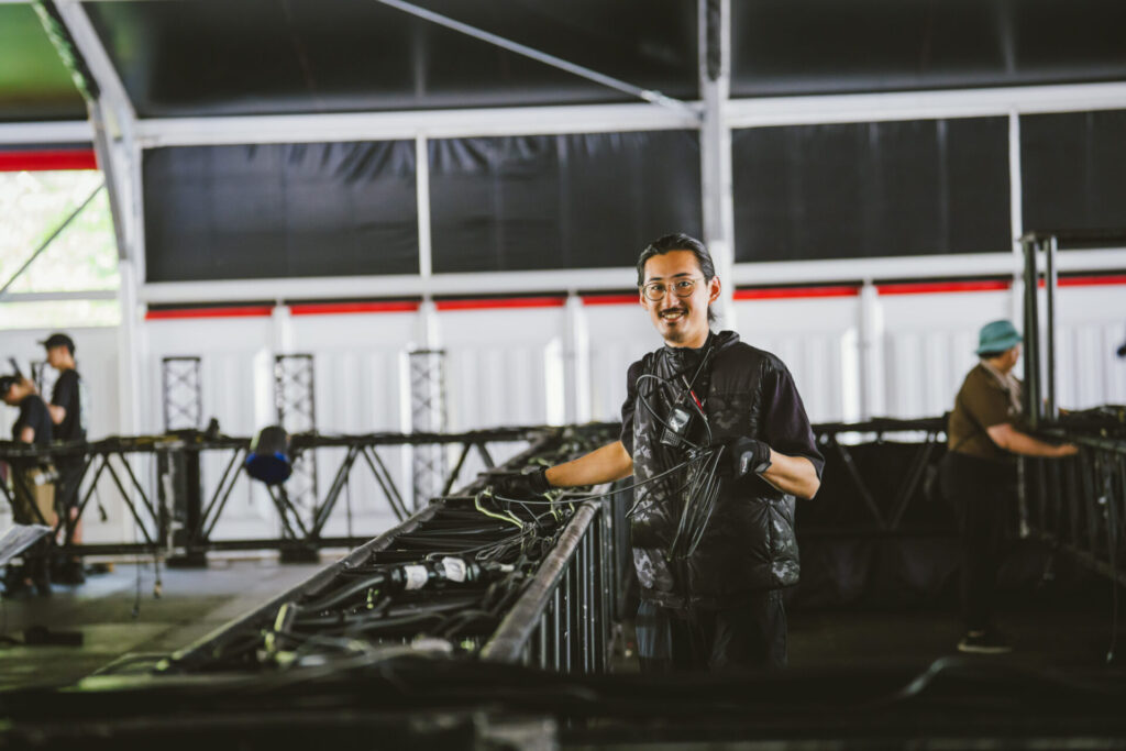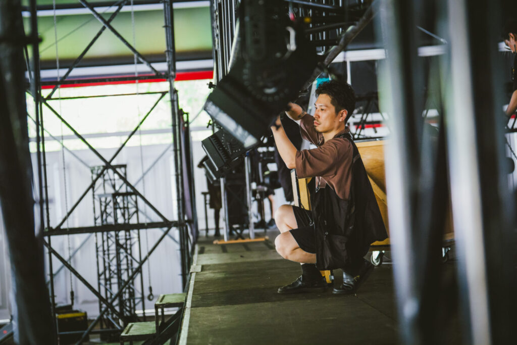 RYUは、唯一深夜まで稼働するステージ「Red Marquee」の照明を担当。機材の設営から調整、本番オペレート、撤去までを一貫して担い、昼夜を問わずおこなわれるライブを照明面から支えました。